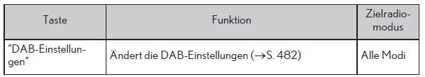 Zum Anzeigen des DAB-Einstellungsbildschirms auf andere Weise wählen Sie auf dem Audiomenübildschirm "DAB-Einstellungen".