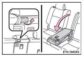 ● Klemmen Sie sich beim Umklappen der Rückenlehne nicht die Hände oder Füße zwischen dem hinteren Konsolenkasten und der zweiten Sitzreihe ein.