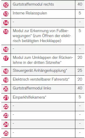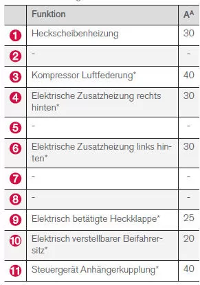 Sicherungen unter dem Handschuhfach schützen u. a. die 230-V-Steckdose, Displays und Türmodule.