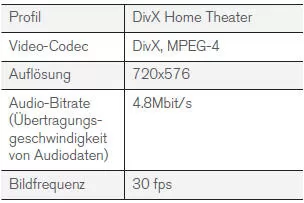 Für DivX zertifizierte Geräte können DivX-Dateien (.divx, .avi) nachweislich in hoher Qualität wiedergeben.